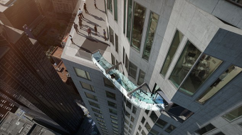 報(bào)道稱,這個被稱作“空中滑行”(Skyslide)的項(xiàng)目是該大樓耗資5000萬美元翻修工程的一部分。除玻璃滑梯外,整個工程還包括一個露天觀景平臺和酒吧。