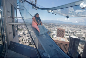 玻璃滑梯全長45英尺(14米),距地面1000英尺(約合304.8米),玻璃的厚度為1.25英寸(32毫米)。游客可以在體驗(yàn)驚險刺激的高空滑梯的同時,俯瞰洛杉磯的迷人景色。